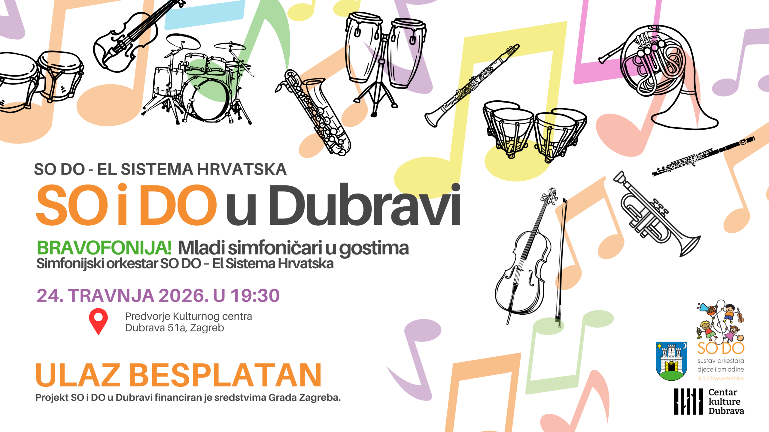 Ovaj koncert je dio projekta SO i DO u Dubravi koji je financiran sredstvima Grada Zagreba.