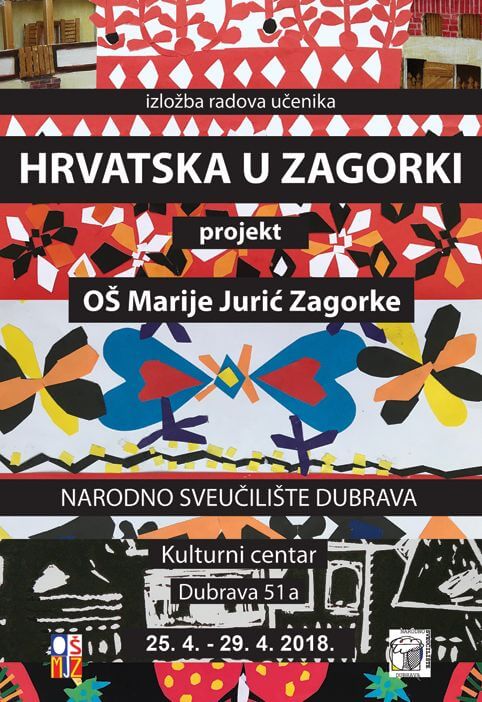 U Kulturnom centru, Dubrava 51 a, otvara se 25. travnja u 18 sati izložba radova učenika OŠ Marije Jurić Zagorke pod nazivom “Hrvatska u Zagorki”. Izložba je otvorena do 29. travnja 2018., radnim danom od 10 do 20 sati. Ulaz je slobodan.