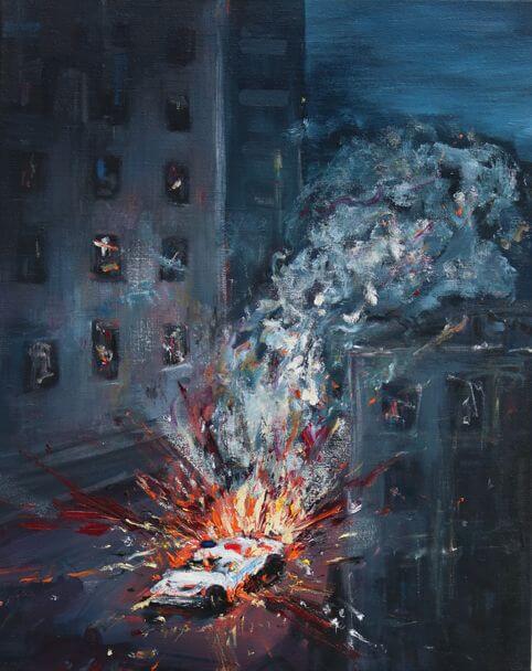 2. Požar u zgradi, 2017., ulje/platno, 160×150 cm
